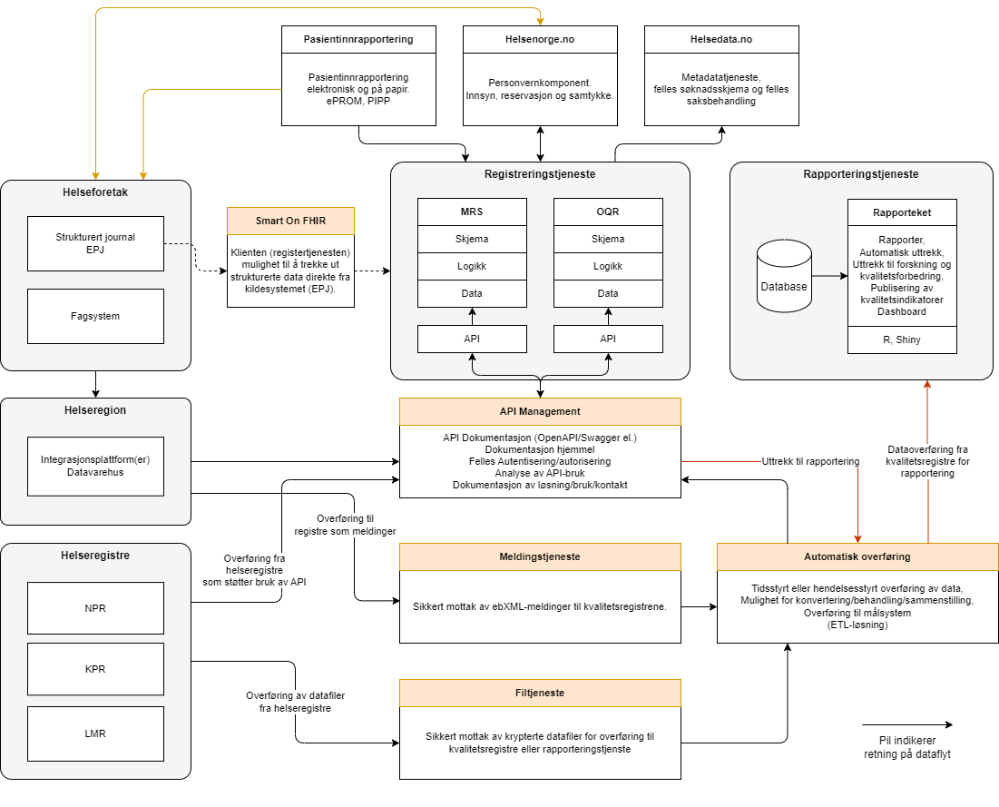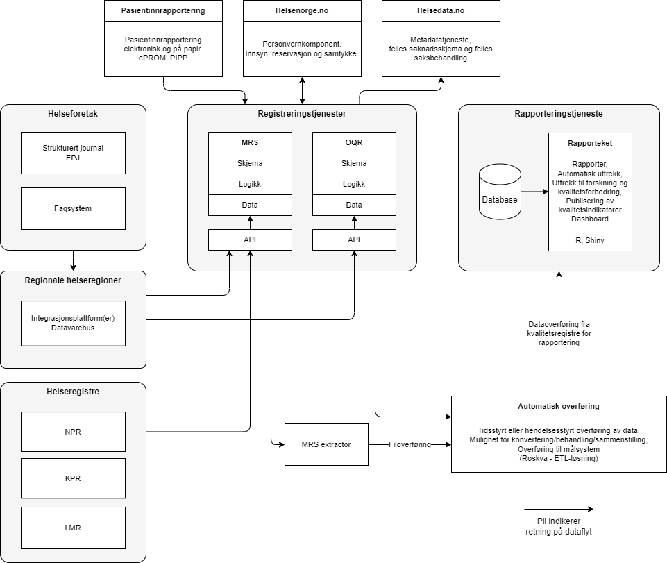 Figur 2 Målskisse referansearkitektur for nasjonale medisinske kvalitetsregistre